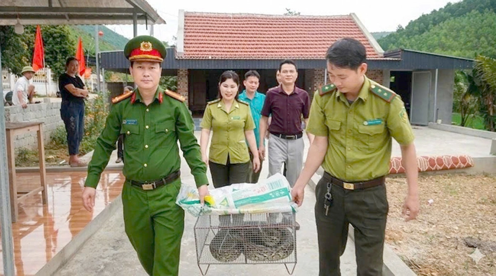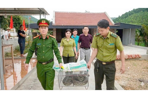 Công an xã Như Thanh phối hợp tiếp nhận và thả cá thể trăn đất quý hiếm về môi trường tự nhiên -
