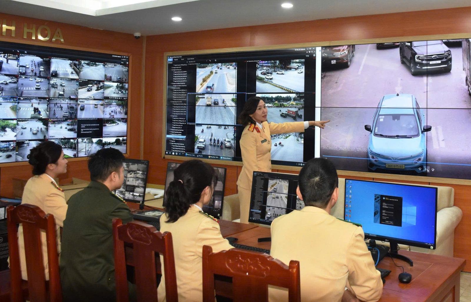 Lực lượng Cảnh sát giao thông giám sát giao thông, thông qua hệ thống camera AI