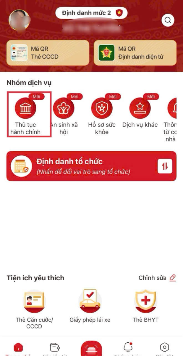 Bước 1: Đăng nhập vào ứng dụng VNeID.