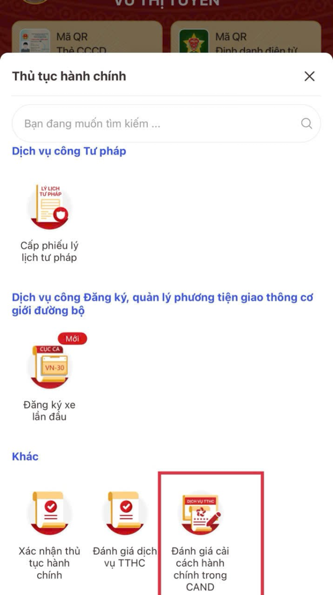 Công an tỉnh Thanh Hóa hướng dẫn các bước thực hiện đánh giá cải cách hành chính trong Công an nhân dân qua ứng dụng VNeID như sau: