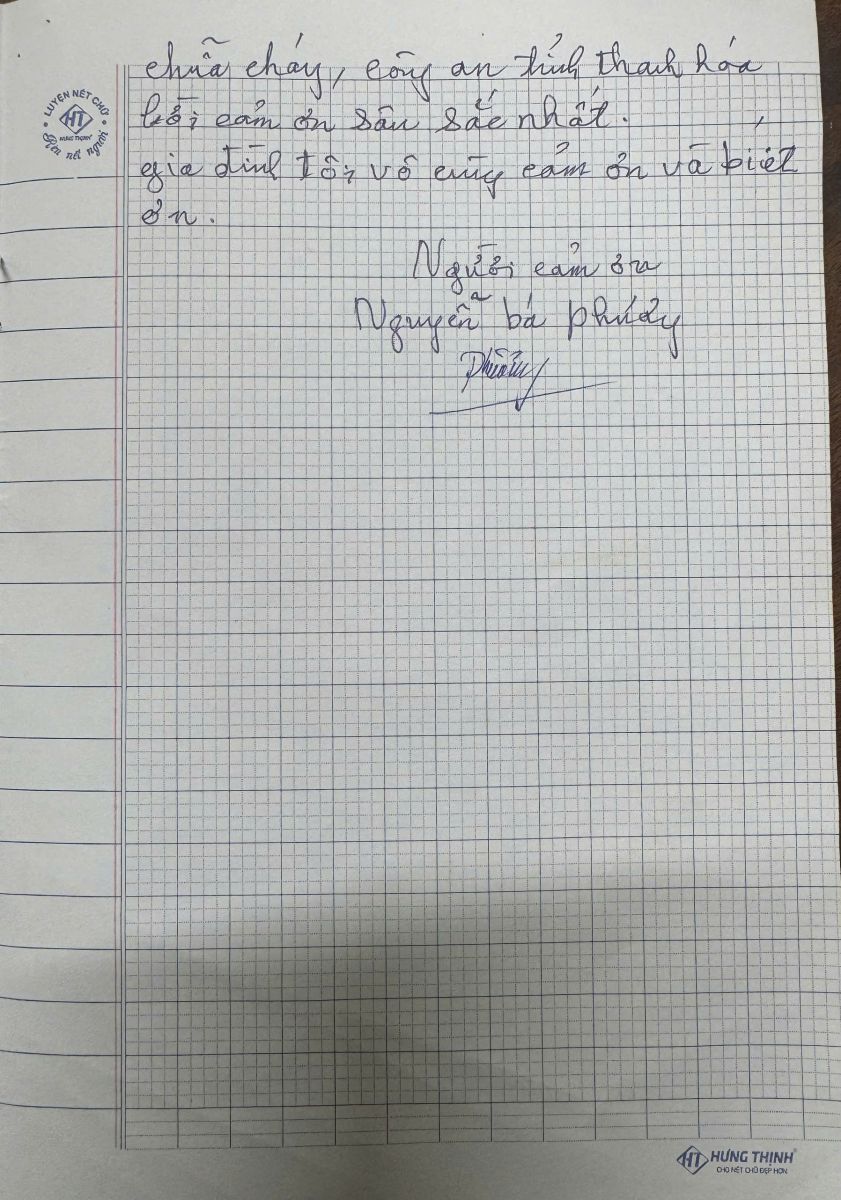 Trong thư, ông bà bày tỏ sự xúc động và biết ơn sâu sắc trước tinh thần dũng cảm, hành động kịp thời, tận tâm của các chiến sĩ PCCC và CNCH. Ông Phương viết: