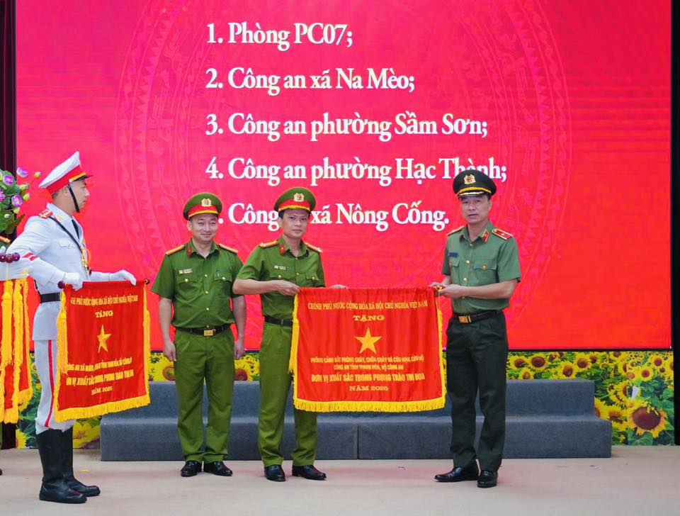 Tại Hội nghị, thừa ủy quyền của, đồng chí Giám đốc Công an tỉnh đã trao tặng Cờ thi đua của Chính phủ cho 5 đơn vị thuộc Công an tỉnh Thanh Hóa có thành tích xuất sắc trong phong trào thi đua “Vì an ninh Tổ quốc” năm 2025, trong đó có Phòng Cảnh sát PCCC và CNCH.