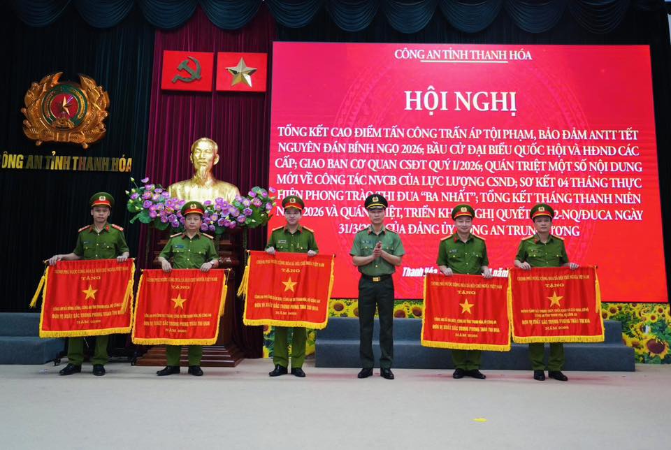 Chiều 16/4, Công an tỉnh Thanh Hóa tổ chức Hội nghị giao ban Cơ quan Cảnh sát điều tra quý I/2026; tổng kết cao điểm tấn công, trấn áp tội phạm bảo đảm ANTT Tết Nguyên đán Bính Ngọ 2026, bầu cử đại biểu Quốc hội khóa XVI và đại biểu HĐND các cấp nhiệm kỳ 2026–2031; sơ kết 4 tháng thực hiện phong trào thi đua “Ba nhất”; tổng kết Tháng Thanh niên và quán triệt Nghị quyết số 02 của Đảng ủy Công an Trung ương. Dự và chỉ đạo Hội nghị có Thiếu tướng Tô Anh Dũng, Ủy viên Ban Thường vụ Tỉnh ủy, Giám đốc Công an tỉnh.