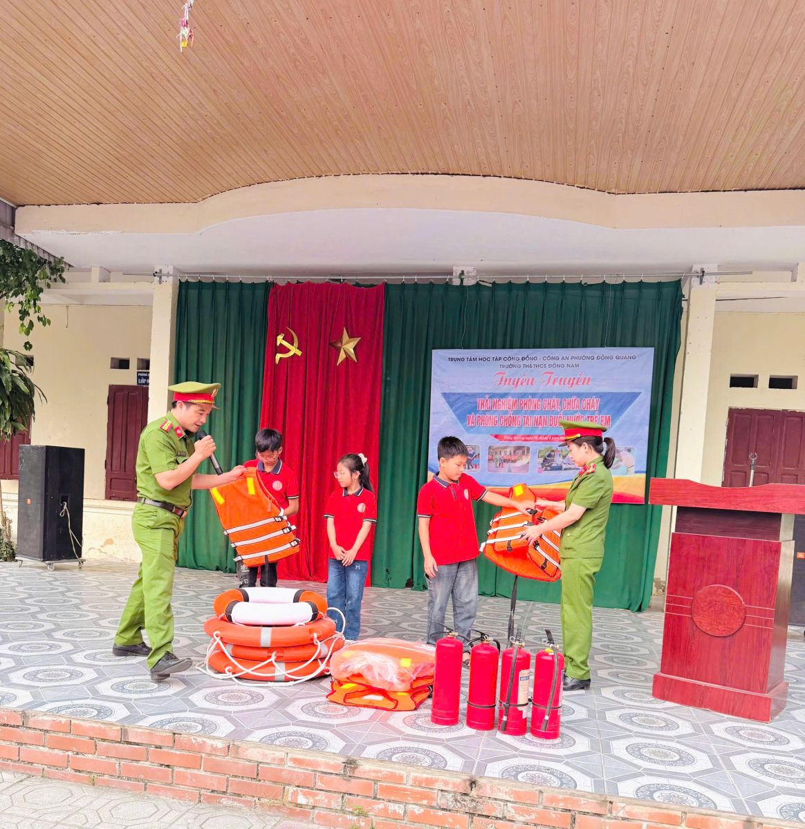 Sáng ngày 06/4/2026, Công an phường Đông Quang phối hợp với Trung tâm Học tập cộng đồng đã tổ chức các hoạt động tuyên truyền, trải nghiệm thực tế công tác PCCC, phòng chống tai nạn đuối nước tại trường Tiểu học và THCS Đông Phú, Tiểu học và THCS Đông Nam, THCS Đông Văn, THCS Đông Quang và THCS Quảng Thắng.