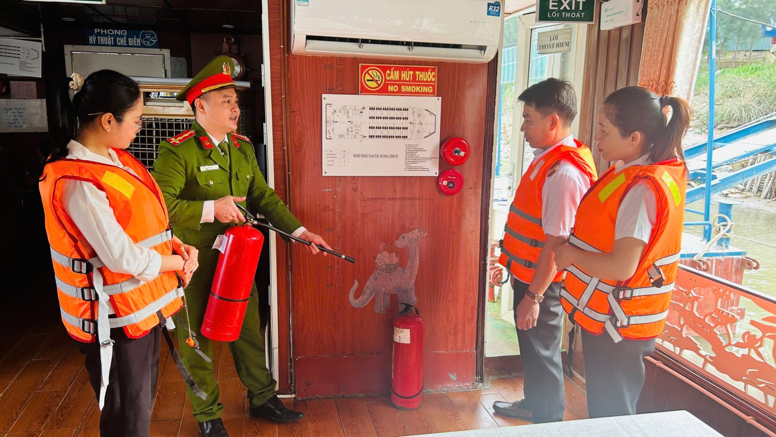 Tại bến tàu du lịch Hoàng Long, cán bộ, chiến sĩ Phòng Cảnh sát PCCC và CNCH đã trực tiếp phổ biến những kiến thức cơ bản về nguyên nhân, nguy cơ dẫn đến cháy, nổ; tai nạn đuối nước; hướng dẫn kỹ năng bảo đảm an toàn khi tham quan, vui chơi, di chuyển bằng phương tiện thủy; cách sử dụng áo phao, phao cứu sinh đúng cách; đồng thời tuyên truyền các biện pháp xử lý tình huống ban đầu khi xảy ra sự cố cháy, nổ, tai nạn đuối nước.