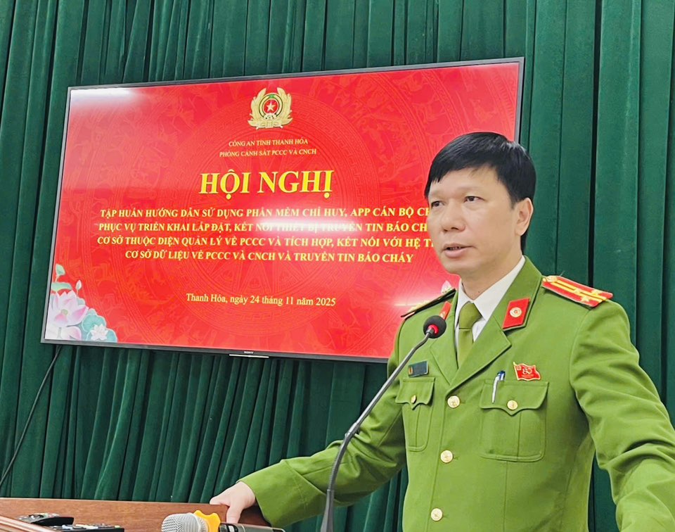 Trong 2 ngày 24, 25/11/2025, Cục Cảnh sát PCCC và CNCH (BCA) phối hợp Tổng công ty Công nghệ - Viễn thông Toàn cầu (GTEL) tổ chức lớp tập huấn, hướng dẫn sử dụng phần mềm nghiệp vụ trang vị theo Đề án Xây dựng hệ thống truyền tin, báo sự cố phòng cháy chữa cháy”, cho 29 đồng chí là Chỉ huy và cán bộ trực tiếp tiếp nhận, xử lý tin báo cháy, cứu nạn cứu hộ tại Trung tâm Chỉ huy thuộc Phòng Cảnh sát PCCC và CNCH, Công an tỉnh Thanh Hóa.