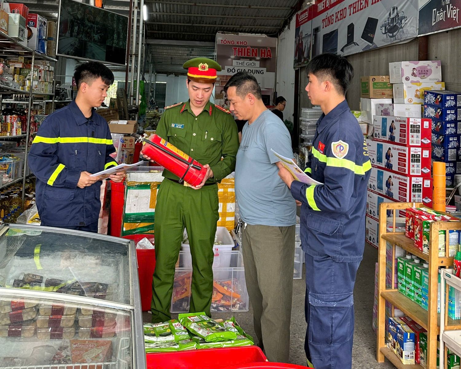 Tuyên truyền, kiểm tra công tác PCCC tại hộ kinh doanh và điểm bầu cử trên địa bàn xã Hoằng Hóa