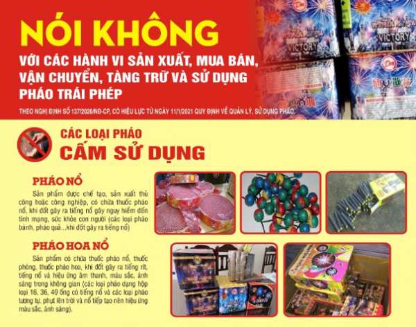 Tết Nguyên đán đang đến gần, mỗi người dân hãy nêu cao tinh thần trách nhiệm, tự giác chấp hành pháp luật, chủ động phòng ngừa, phát hiện và tố giác các hành vi vi phạm về pháo nổ, góp phần giữ vững an ninh chính trị, trật tự an toàn xã hội, để mọi người, mọi nhà được đón Tết Bính Ngọ 2026 vui tươi, an toàn, lành mạnh và tiết kiệm./.