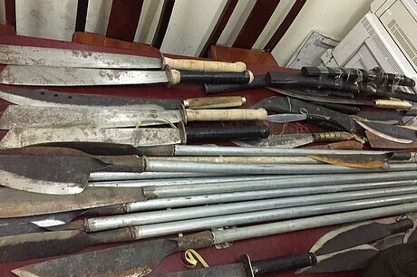 - Dao tự chế hoặc hoán cải: Tay cầm, lưỡi dao; tay cầm dài từ 30cm trở lên; lưỡi có chiều dài từ 5cm trở lên, sắc nhọn hoặc sắc hoặc nhọn