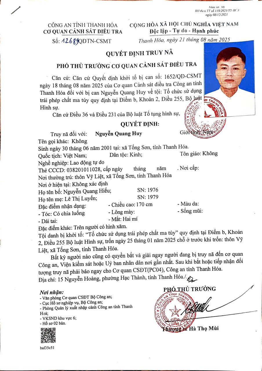 Đơn vị ra quyết định: Phòng CSĐTTP về ma túy Công an tỉnh Thanh Hóa