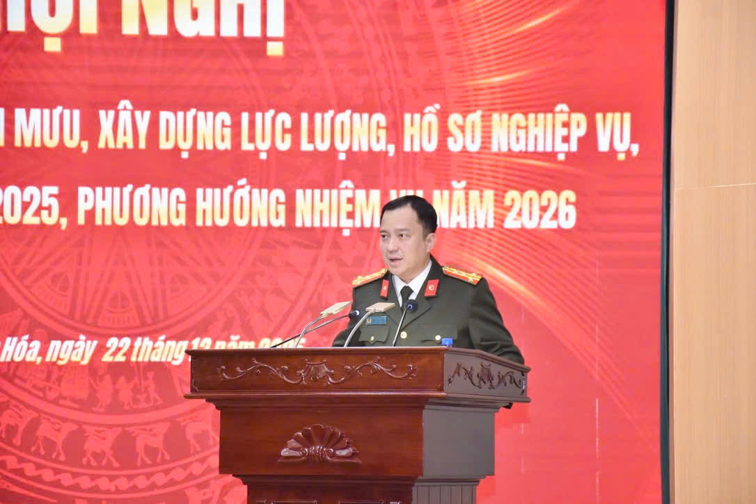 Chiều 22/12, Công an tỉnh Thanh Hóa tổ chức Hội nghị tổng kết công tác tham mưu, xây dựng lực lượng, hồ sơ nghiệp vụ, hậu cần, kỹ thuật và y tế năm 2025; triển khai nhiệm vụ công tác năm 2026 và phát động phong trào thi đua "Ba nhất: Kỷ luật nhất - Trung thành nhất - Gần dân nhất". Đồng chí Đại tá Trần Thái Quang Hoàng, Phó Bí thư Đảng ủy - Phó Giám đốc Công an tỉnh dự, chỉ đạo. Hội nghị được tổ chức theo hình thức trực tiếp kết hợp trực tuyến từ điểm cầu Công an tỉnh đến điểm cầu Công an các huyện, thị xã, thành phố trước đây.