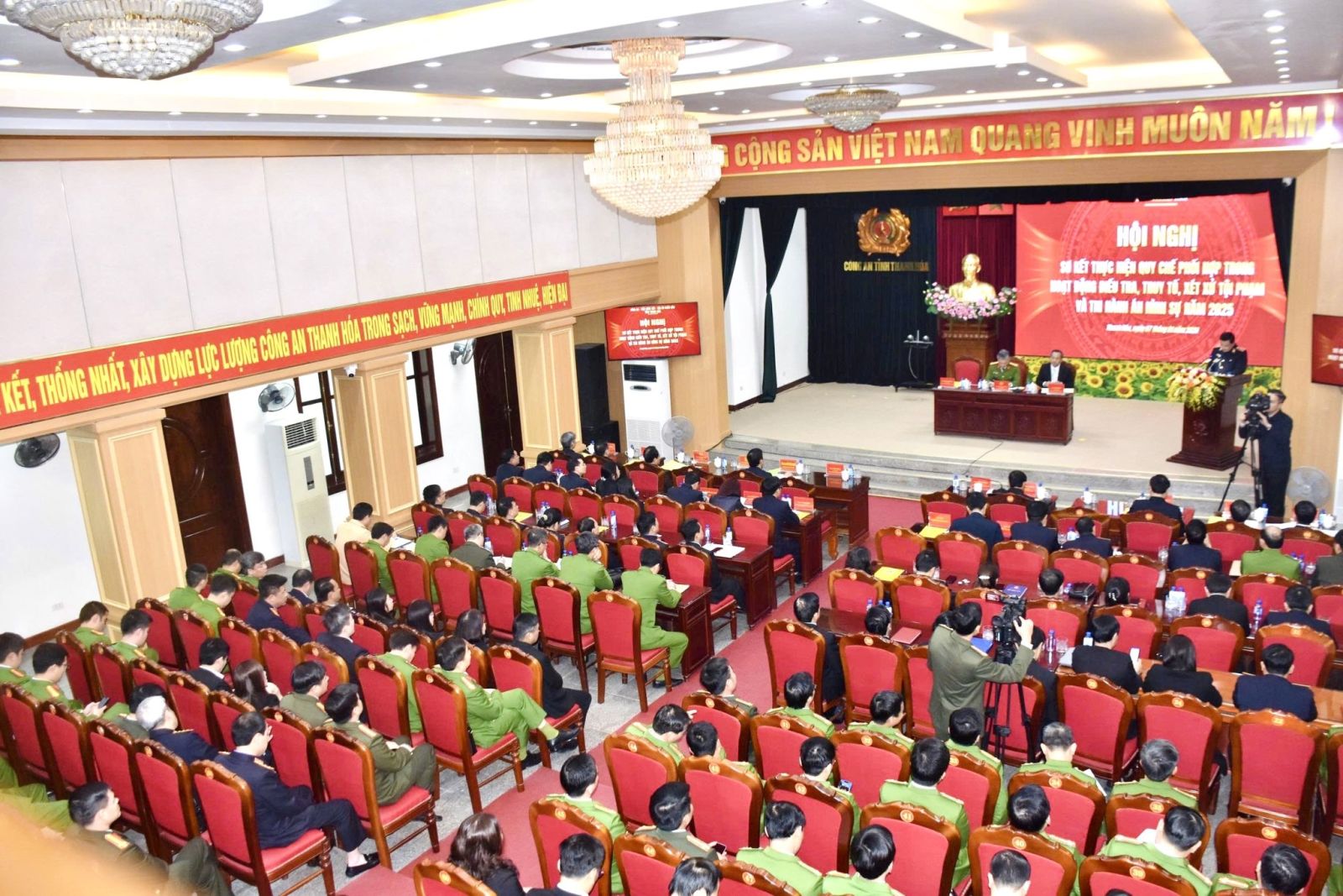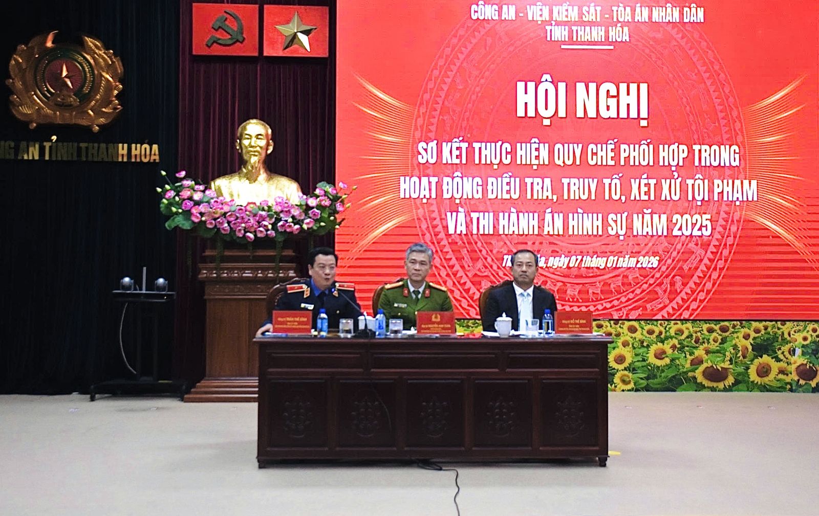 Chiều 07/01/2026, tại Công an tỉnh Thanh Hóa, ba ngành tư pháp của tỉnh gồm Công an, Viện Kiểm sát nhân dân và Tòa án nhân dân tỉnh Thanh Hóa tổ chức Hội nghị sơ kết thực hiện Quy chế phối hợp trong hoạt động điều tra, truy tố, xét xử và thi hành án hình sự năm 2025; triển khai nhiệm vụ công tác năm 2026. Dự hội nghị có đồng chí Nguyễn Quang Hải, Tỉnh ủy viên, Phó Chủ tịch HĐND tỉnh và đại diện lãnh đạo các ban, sở ngành cấp tỉnh.