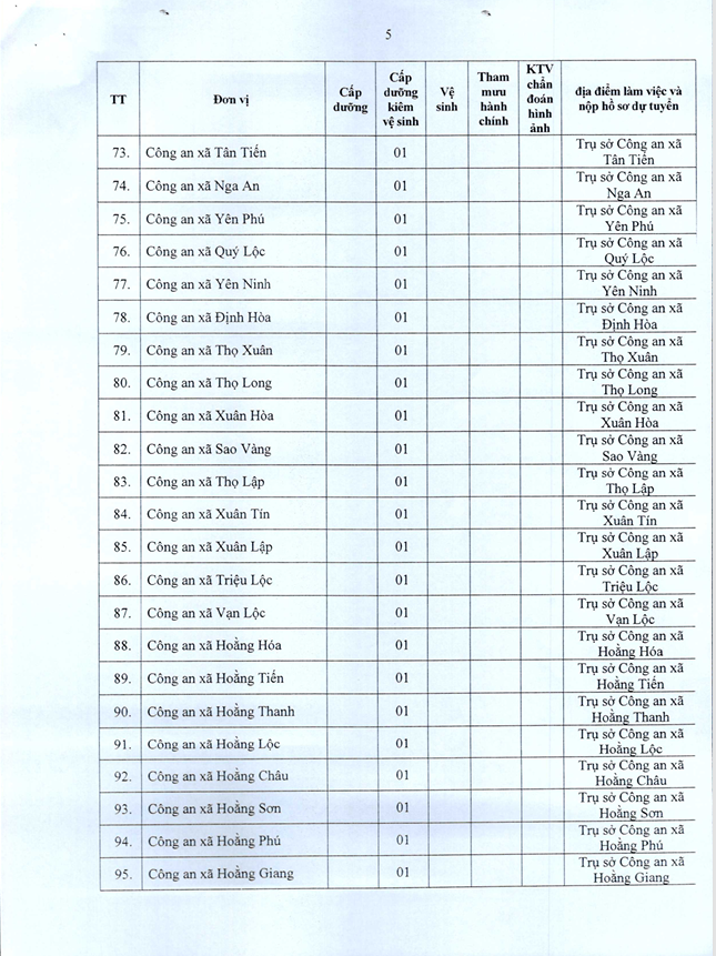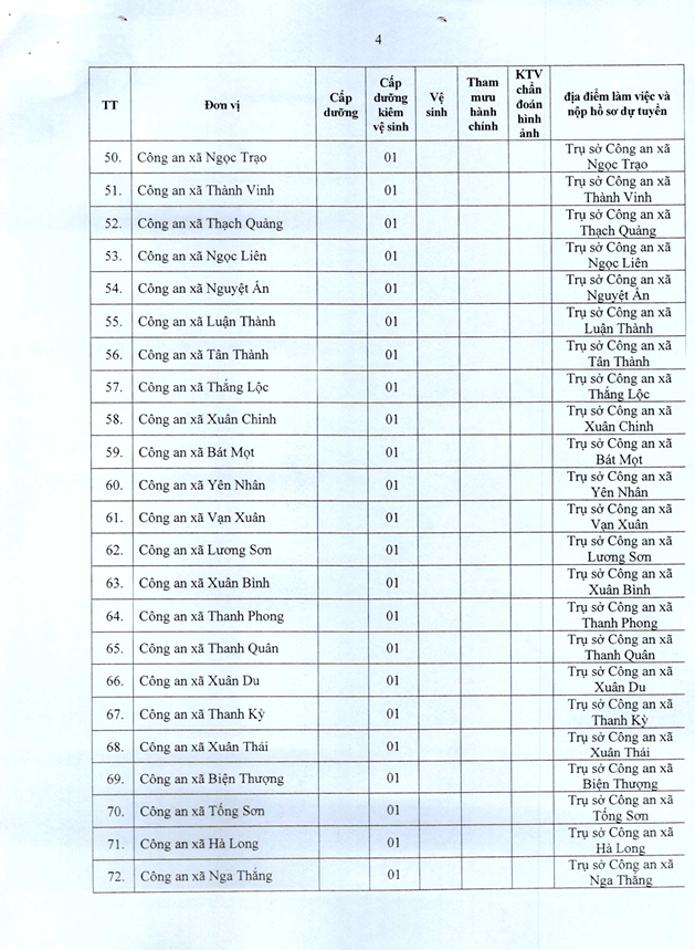 Thông báo về việc tuyển dụng lao động hợp đồng trong Công an Thanh Hóa
