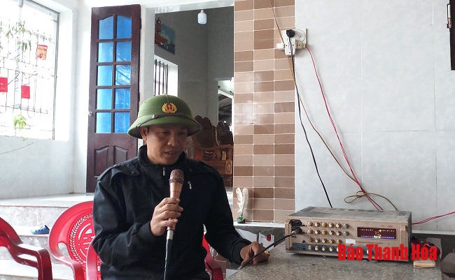 Lực lượng công an huyện Quảng Xương tuyên truyền, vận động, thuyết phục |