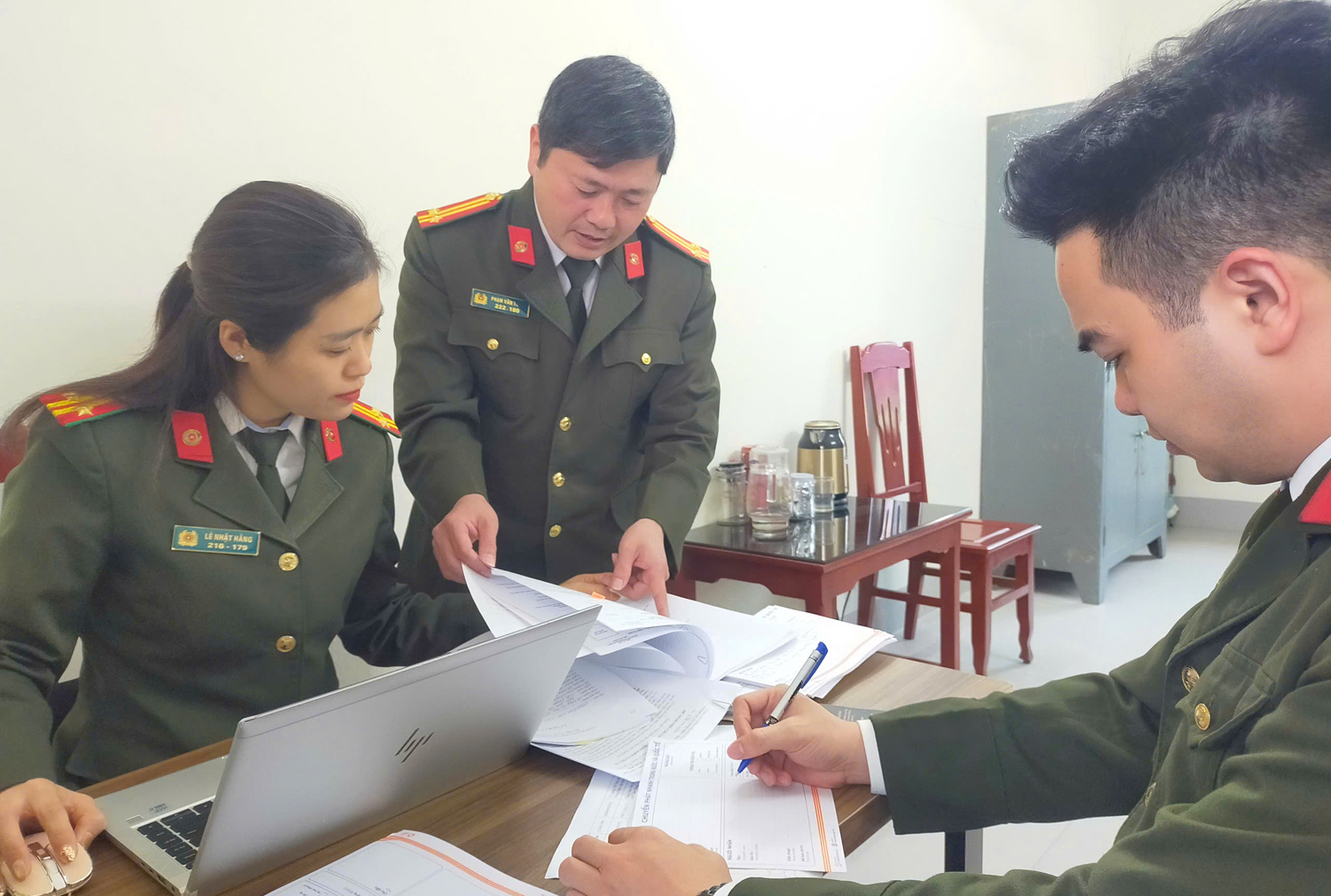 Cán bộ chiến sĩ tham gia chuyên án tập trung cao độ cho công tác điều tra, xác minh.