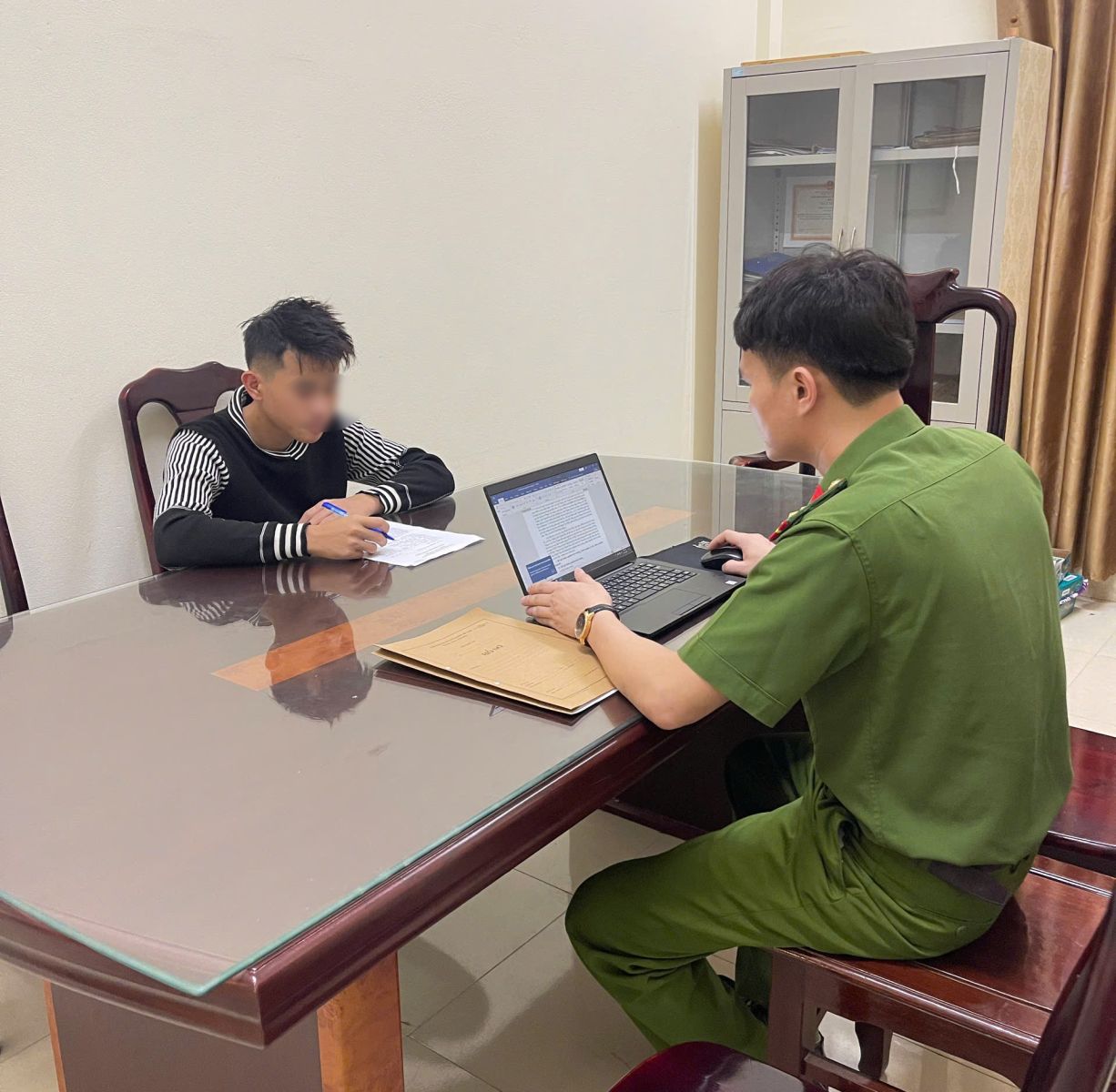 Đối tượng B.T.L, sinh năm 2008 trú tại xã Ngọc Liên tại cơ quan Công an