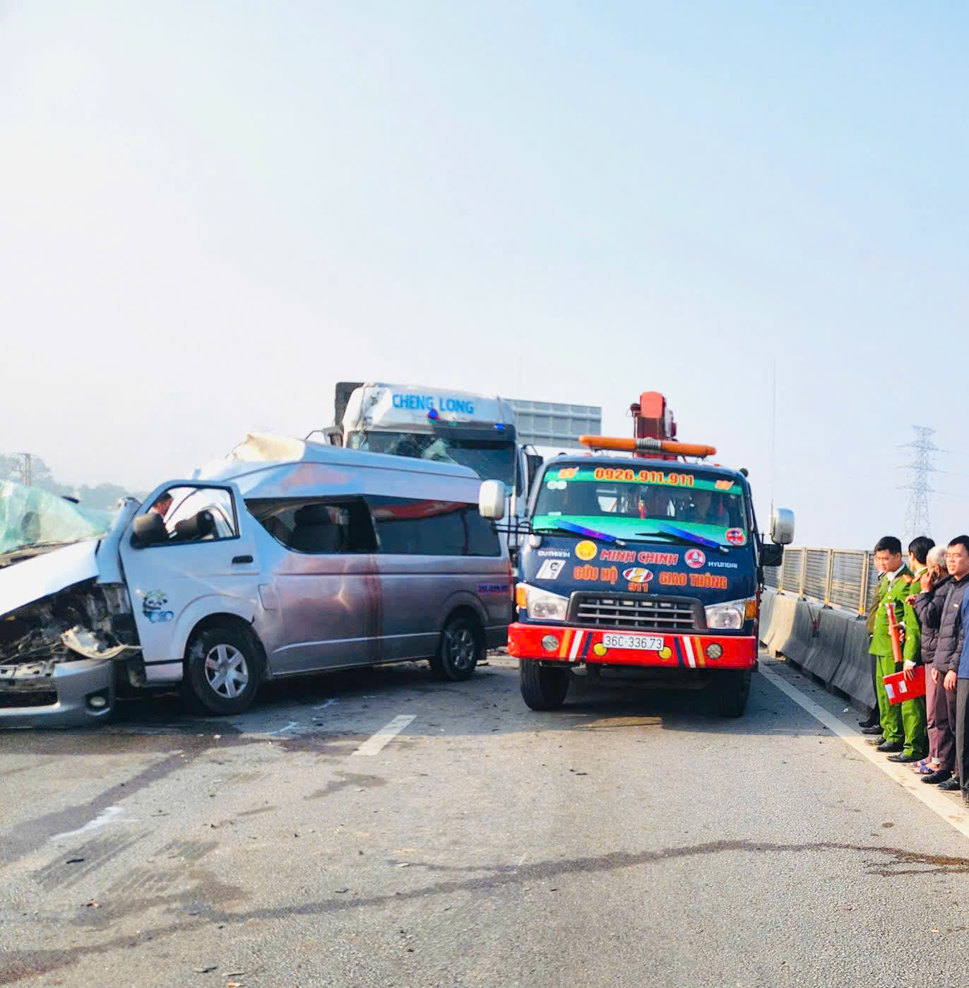 Sau cú va chạm, xe ô tô khách xoay ngang trên làn trong, sát dải phân cách cứng theo chiều di chuyển. Ngay sau đó, xe ô tô đầu kéo biển kiểm soát 36C-111.46, kéo theo rơ mooc biển kiểm soát 36RM - 001.36 đi phía sau đã không phanh kịp và đâm va trực diện vào đuôi rơ mooc biển kiểm soát 35RM - 005.20 (không va chạm với xe 16 chỗ). Hậu quả làm 4 người chết, 6 người bị thương, các phương tiện bị hư hỏng.