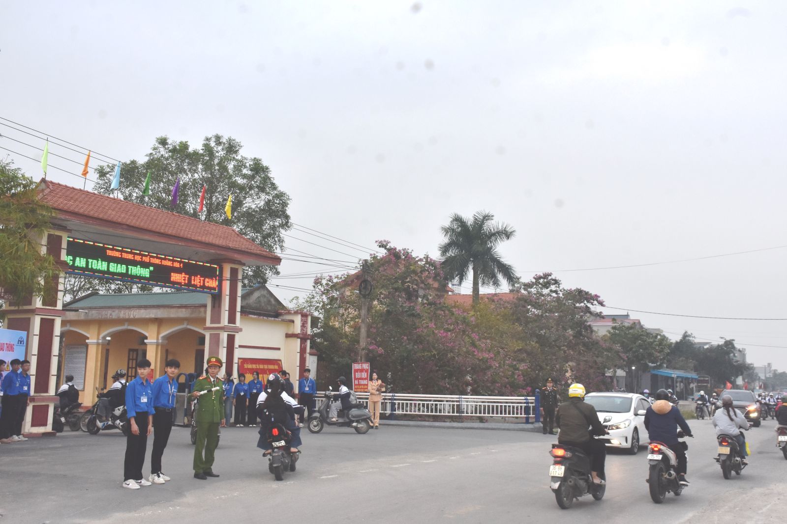 Tổ Tự quản làm nhiệm vụ bảo đảm an toàn giao thông khu vực cổng trường THPT Hoằng Lộc 4