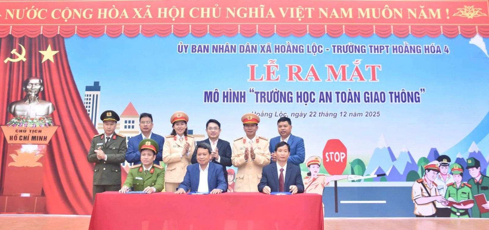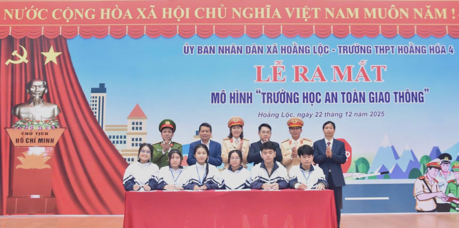 Với mục tiêu, để mỗi ngày đến trường và từ trường về nhà của học sinh luôn an toàn, đồng thời phát huy vai trò, trách nhiệm của các cấp, các ngành và toàn dân tham gia bảo đảm trật tự an toàn giao thông, trật tự công cộng trên địa bàn, sáng 22/12/2025, Uỷ ban nhân dân xã Hoằng Lộc (tỉnh Thanh Hoá) đã tổ chức Lễ ra mắt mô hình “Trường học với an toàn giao thông” tại trường THPT Hoằng Lộc 4...