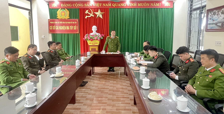Đồng chí Phó Giám đốc Công an tỉnh yêu cầu Cơ sở cai nghiện ma túy số 1 tiếp tục rà soát toàn bộ quy trình quản lý, giáo dục học viên, tăng cường đoàn kết nội bộ, bảo vệ chính trị nội bộ, siết chặt kỷ luật, kỷ cương, bảo đảm tuyệt đối an ninh an toàn của cơ sở.