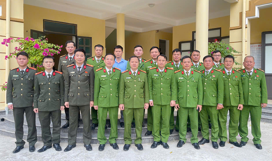 Đồng chí Phó Giám đốc Công an tỉnh kiểm tra Trạm phát sóng Hàm Rồng và chụp ảnh lưu niệm với