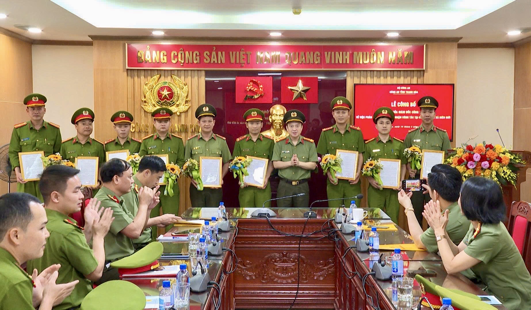 Sáng 19/3/2026, Đại tá Trần Thái Quang Hoàng, Phó Giám đốc Công an tỉnh Thanh Hoá đã chủ trì Lễ công bố quyết định của Giám đốc Công an tỉnh về việc điều động, phân công cán bộ đang công tác tại các đơn vị trực thuộc Bộ Công an tăng cường về công tác tại Công an các xã biên giới trên địa bàn tỉnh Thanh Hóa...