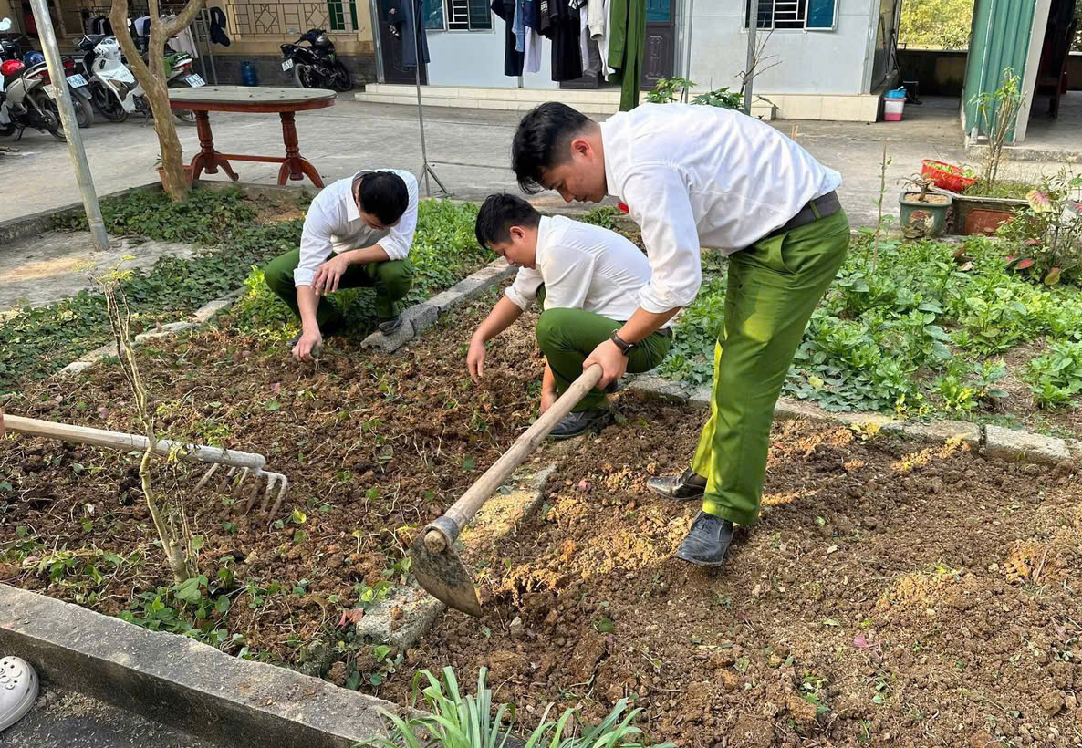 Theo đó, đoàn viên, thanh niên Công an xã Thượng Ninh đã tận dụng quỹ đất sẵn khoảng hơn 30m2, tổ chức cải tạo, quy hoạch và xây dựng khu vườn trồng rau theo hướng xanh - sạch - an toàn, bảo đảm tiết kiệm và khoa học.
