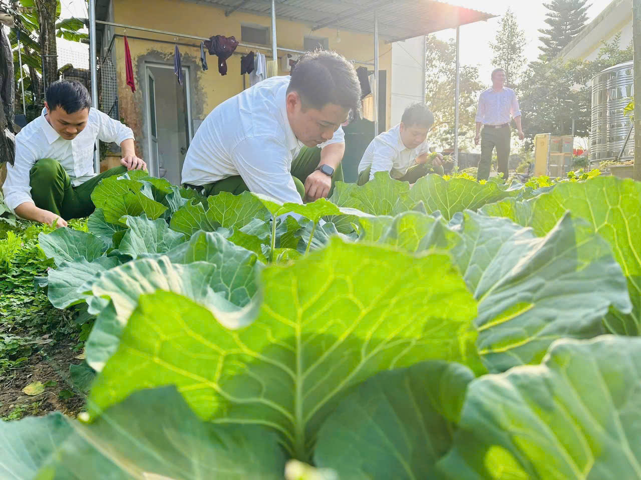 Công trình “Vườn rau thanh niên” không chi tạo không gian tươi mát mà còn là nguồn cung cấp thực phẩm sạch cho đơn vị