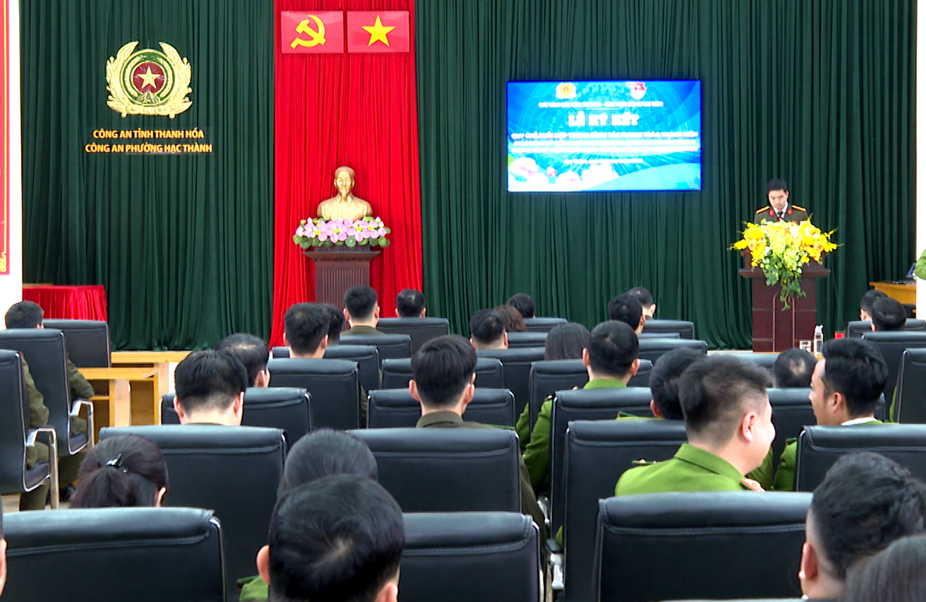 Chiều 02/3, Chi đoàn Phòng Tham mưu Công an tỉnh và Đoàn Thanh niên cơ sở Công an phường Hạc Thành tổ chức Lễ ký Quy chế phối hợp trong công tác bảo đảm an ninh, trật tự và xây dựng lực lượng. Đồng chí Đại tá Trần Thái Quang Hoàng, Phó Bí thư Đảng uỷ, Phó Giám đốc Công an tỉnh dự và phát biểu chỉ đạo Lễ ký kết...
