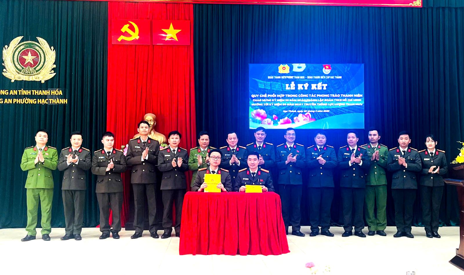 Chi đoàn Phòng Tham mưu và Đoàn Thanh niên cơ sở Công an phường Hạc Thành ký Quy chế phối hợp bảo đảm an ninh, trật tự, xây dựng lực lượng