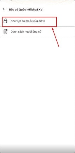 Bước 3: Tại màn chức năng Bầu cử Quốc hội XVI, chọn "Khu vực bỏ phiếu của cử tri".