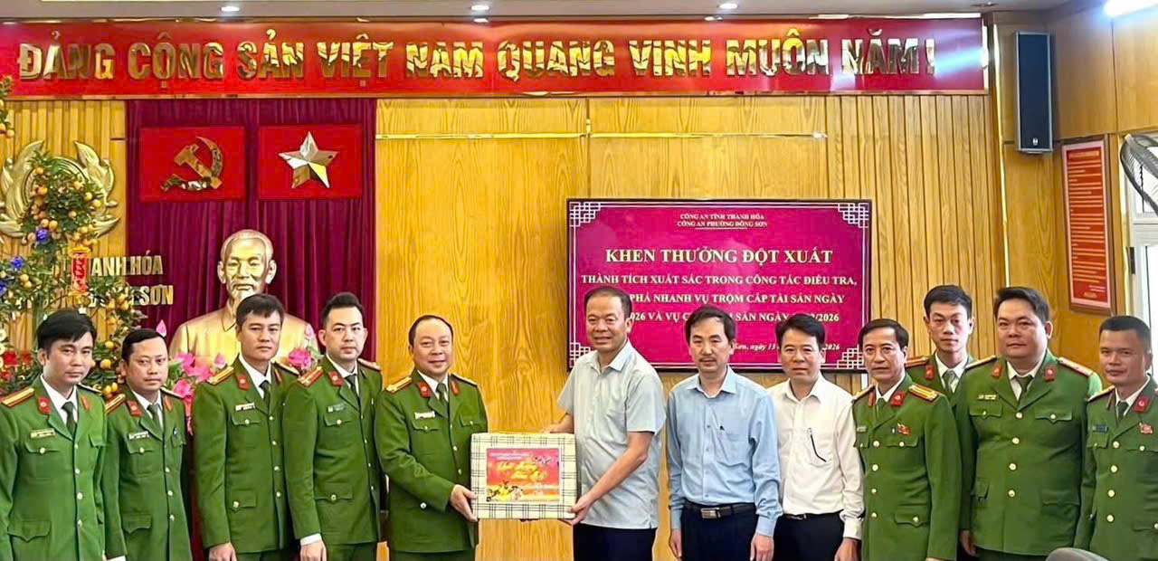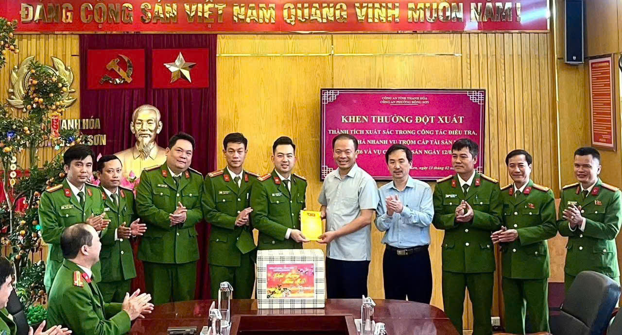 Lãnh đạo phường Đông Sơn khen thưởng đột xuất cho Công an phường Đông Sơn vì có thành tích nhanh chóng điều tra, làm rõ 2 vụ án trộm cắp và cướp tài sản