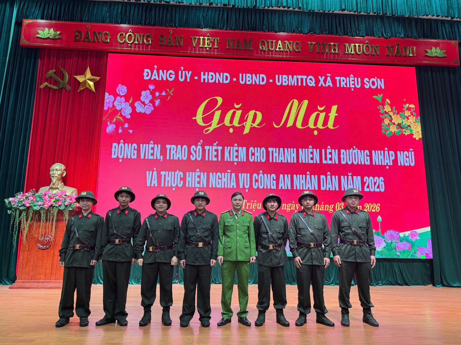 Xã Triệu Sơn gặp mặt động viên, trao sổ tiết kiệm cho thanh niên lên đường nhập ngũ và thực hiện nghĩa vụ Công an nhân dân năm 2026