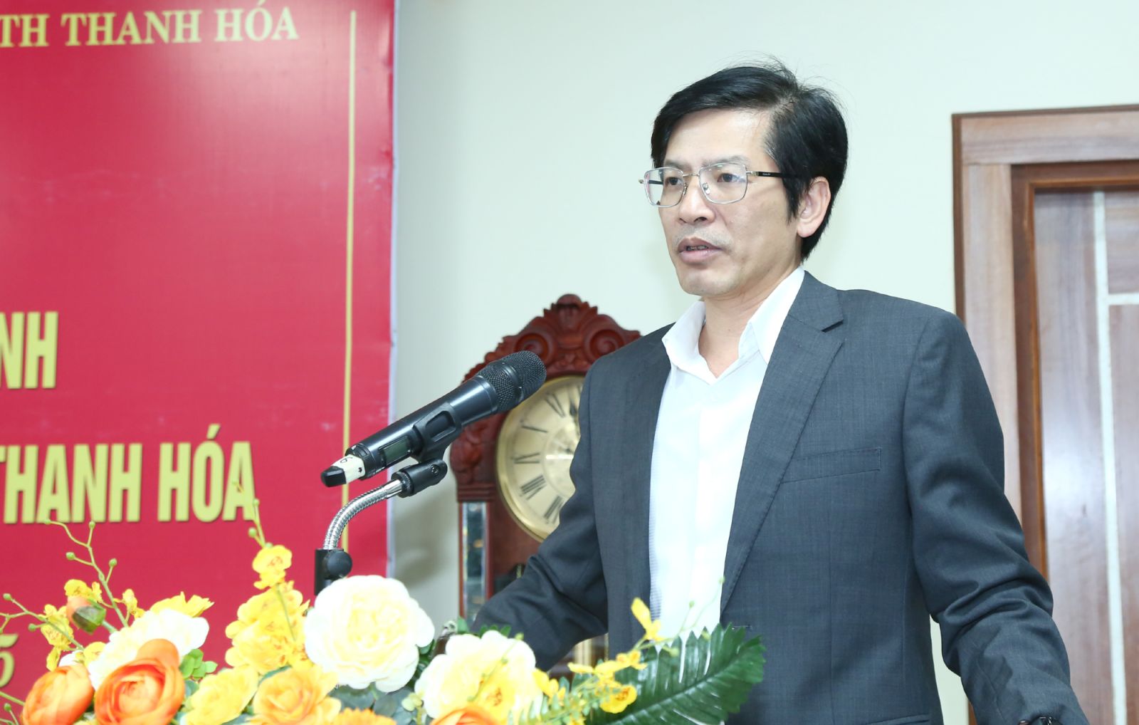 Đồng chí Giám đốc Báo và Đài phát thanh - truyền hình Thanh Hóa phát biểu tại buổi lễ.