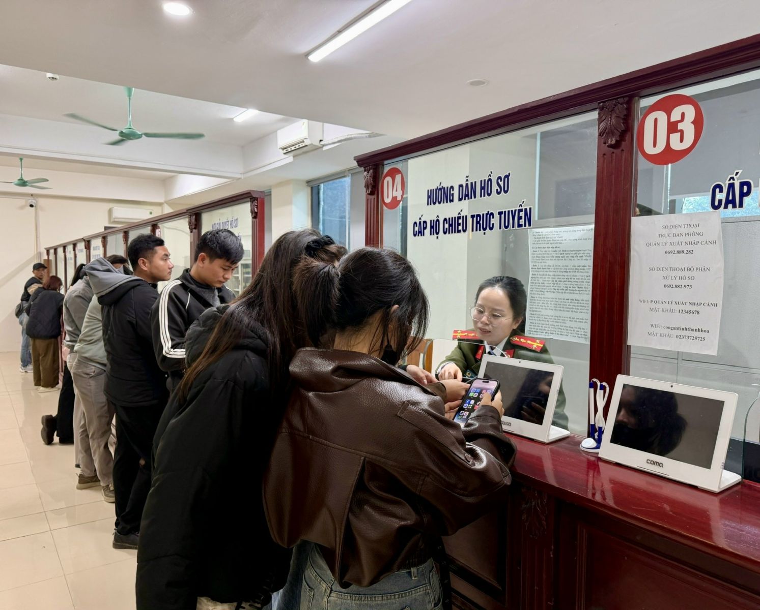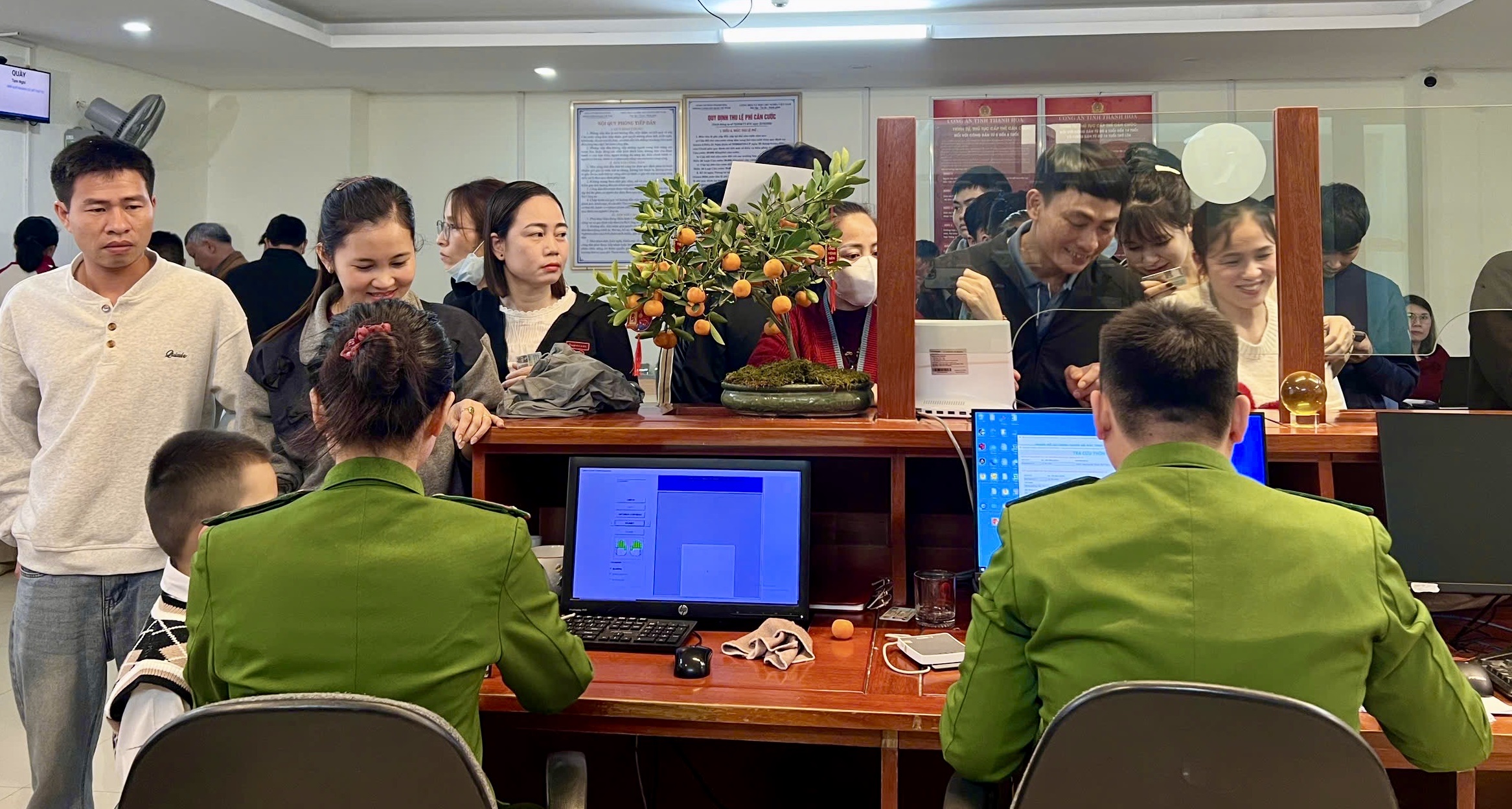Không khí làm việc khẩn trương, nghiêm túc tại các quầy giao dịch Công an tỉnh những ngày đầu xuân.
