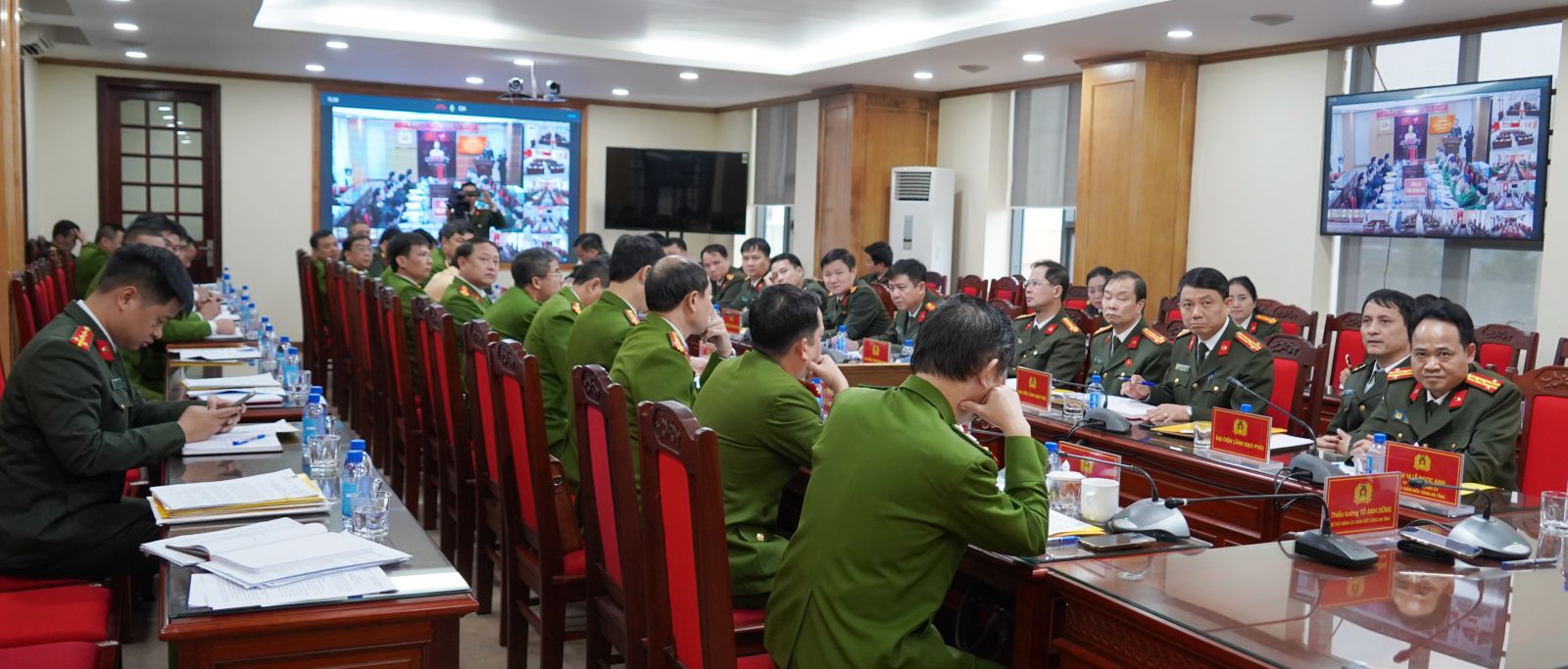 Hội nghị được tổ chức dưới hình thức trực tiếp kết hợp trực tuyến từ điểm cầu Công an tỉnh đến điểm cầu Công an các huyện cũ với sự tham gia của các đồng chí Trưởng, Phó Trưởng Công an các xã, phường