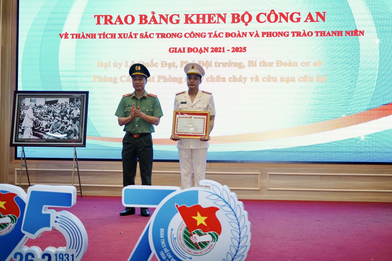 Tại buổi lễ, có 2 tập thể, 5 cá nhân có thành tích xuất sắc vinh dự được Bộ trưởng Bộ Công an và Trung ương Đoàn TNCS Hồ Chí Minh tặng Bằng khen; 14 đoàn viên, thanh niên tiêu biểu được Giám đốc Công an tỉnh trao tặng giải thưởng “Gương mặt trẻ Công an Thanh Hóa tiêu biểu” năm 2025.