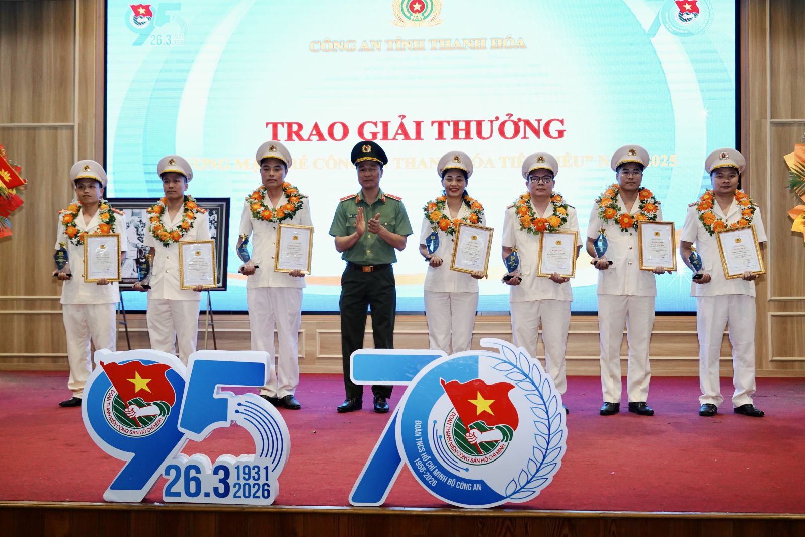 Chiều 25/3/2026, tại Hội trường Đoàn điều dưỡng 296 (phường Sầm Sơn, tỉnh Thanh Hóa), Công an tỉnh Thanh Hóa phối hợp với Tỉnh đoàn Thanh Hóa tổ chức Lễ kỷ niệm 95 năm Ngày thành lập Đoàn TNCS Hồ Chí Minh (26/3/1931 - 26/3/2026) và 70 năm Ngày truyền thống Đoàn Thanh niên Bộ Công an (1956 - 2026).