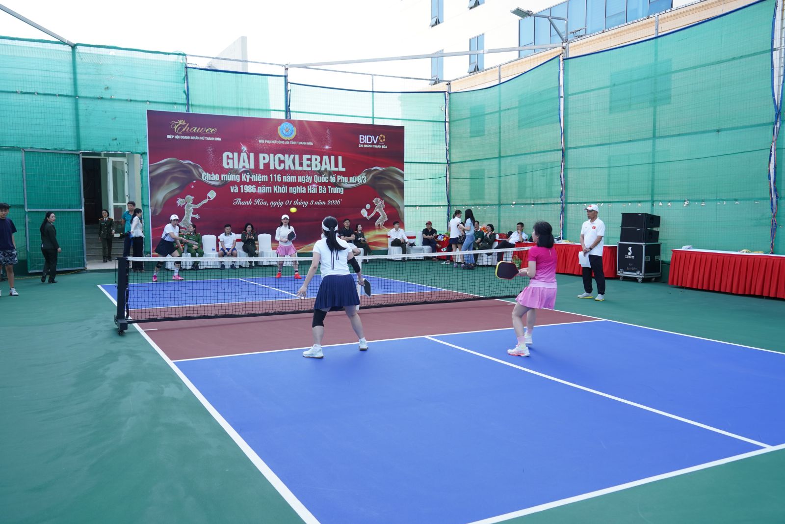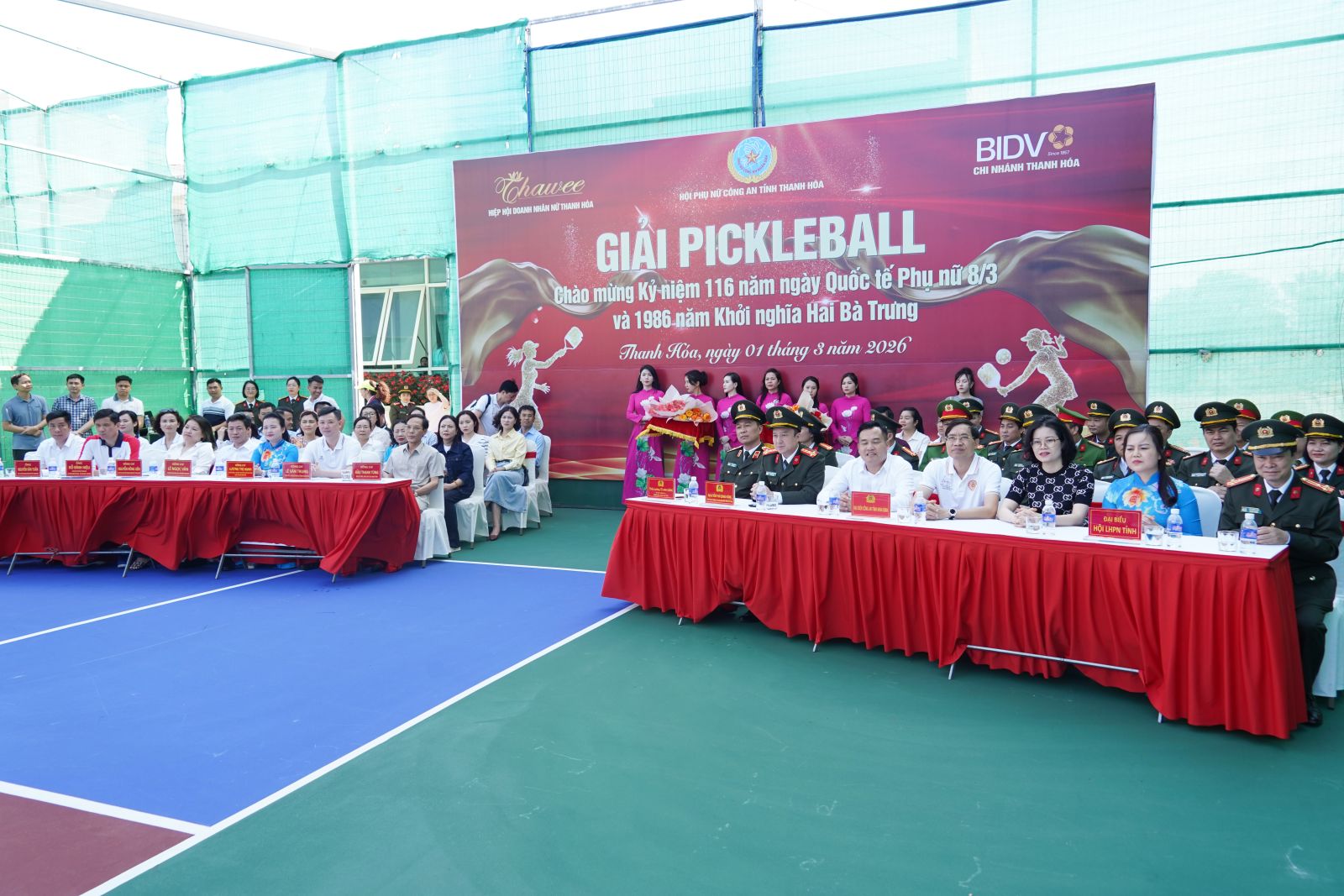Ngày 01/3/2026, Hội phụ nữ Công an tỉnh Thanh Hoá phối hợp với Hiệp hội Doanh nhân nữ Thanh Hoá và Ngân hàng BIDV Chi nhánh Thanh Hóa tổ chức Giải thể thao Pickleball chào mừng kỷ niệm 116 năm ngày quốc tế phụ nữ 8/3 và 1986 năm khởi nghĩa Hai Bà Trưng. Tham dự lễ khai mạc có đồng chí Thiếu tướng Tô Anh Dũng, Uỷ viên Ban Thường vụ Tỉnh Uỷ, Bí thư Đảng uỷ, Giám đốc Công an tỉnh; Đầu Thanh Tùng, Tỉnh uỷ viên, Phó Chủ tịch UBND tỉnh; Lê Văn Chung, Tỉnh uỷ viên, Giám đốc Sở Văn hoá, thể thao và du lịch tỉnh; Lương Thị Hạnh, Tỉnh uỷ viên, Chủ tịch Hội Liên hiệp Phụ nữ tỉnh..