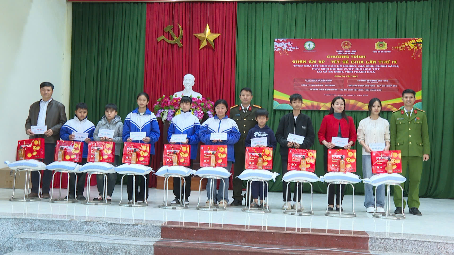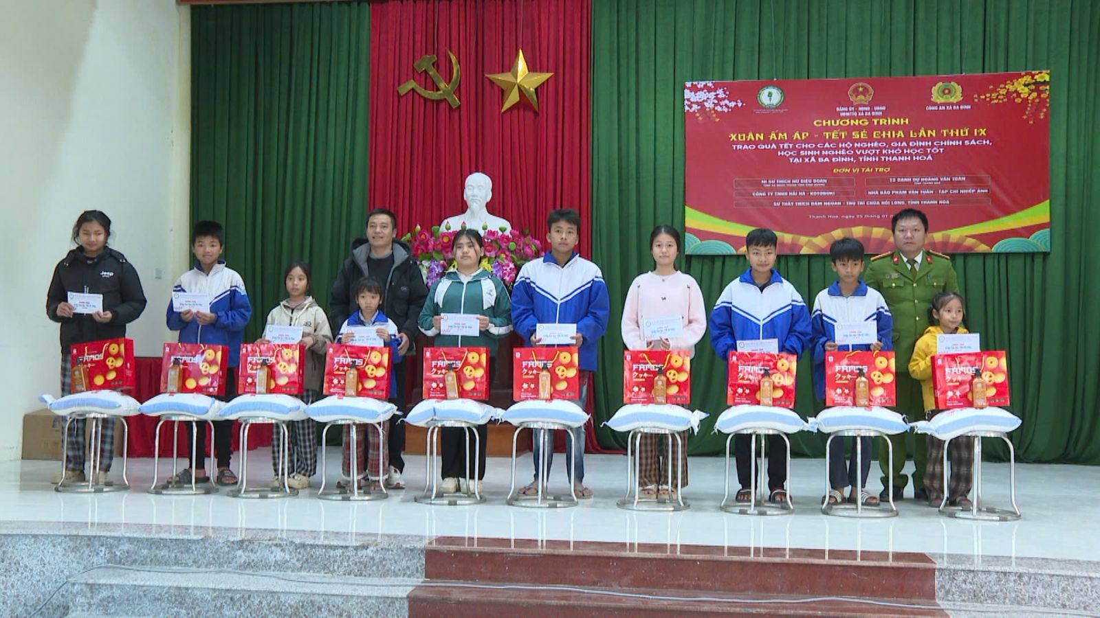 Tết Nguyên đán là thời khắc thiêng liêng, là dịp sum vầy, đoàn viên của mỗi gia đình. Tuy nhiên ở đâu đó trong cộng đồng vẫn còn những gia đình chính sách, hộ nghèo, những hộ gia đình còn khó khăn và các em học sinh còn nhiều thiếu thốn. Với tinh thần “Lá lành đùm bọc là rách”, “ Vì người nghèo - Không để ai bị bỏ lại phía sau”, Công an xã Ba Đình đã phối hợp với Đảng uỷ - HĐND - UBND - MTTQ xã, Chi đoàn Công an xã và Viện phát triển văn hoá và chăm sóc sức khoẻ cộng đồng trao tặng 200 phần quà Tết, mỗi phần quà trị giá 500 nghìn đồng, gồm gạo, bánh kẹo và tiền mặt cho các gia đình gia đình có hoàn cảnh khó khăn, hộ nghèo, học sinh nghèo vượt khó vươn lên trong học tập, cùng 200 chiếc váy cho các cháu học sinh mầm non.