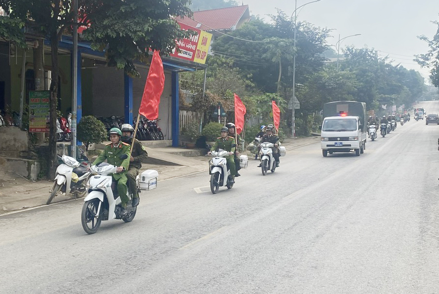 Công an xã Hồi Xuân diễu hành biểu dương lực lượng trên các tuyến đường