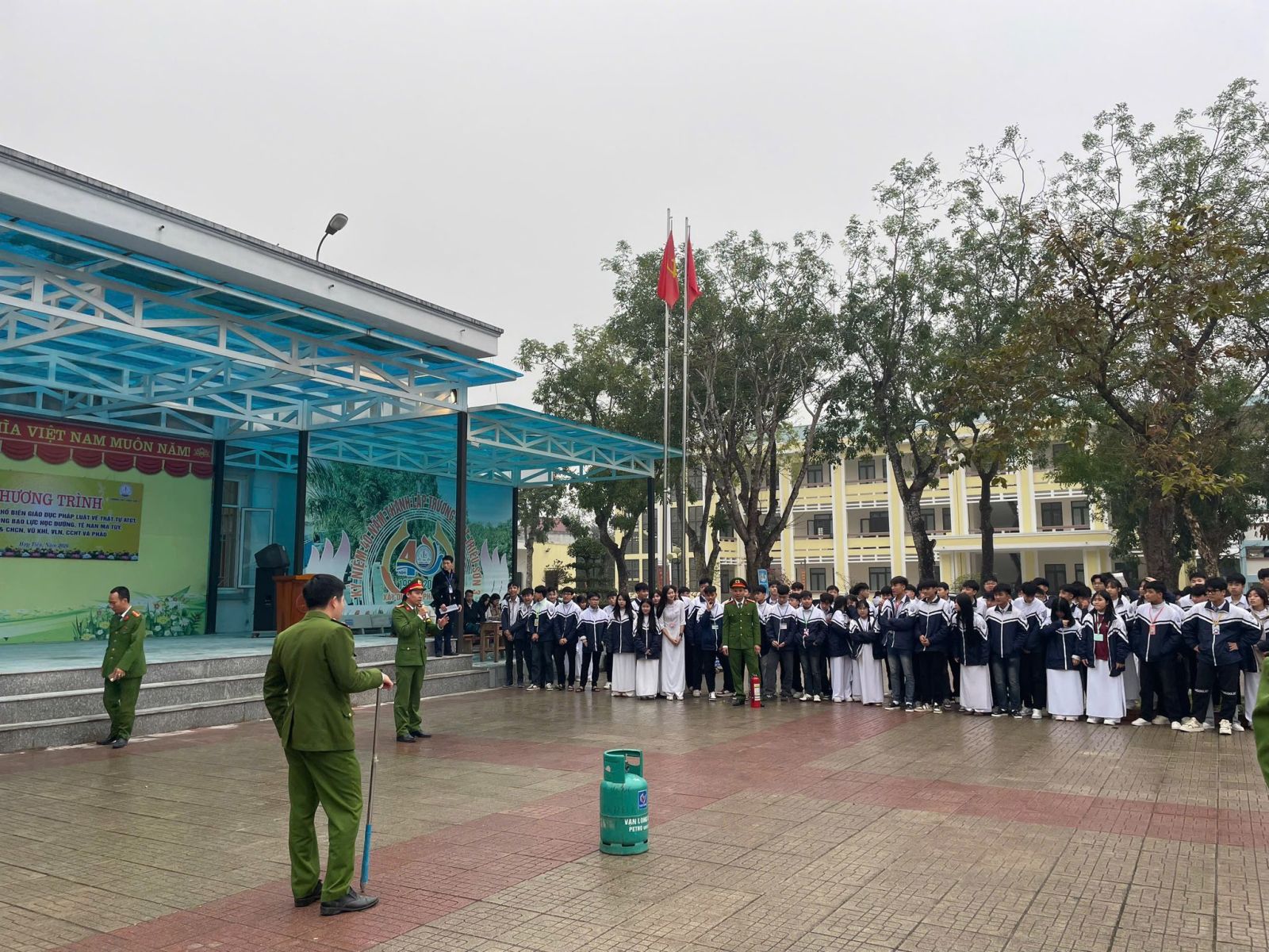 Tại buổi tuyên truyền, cán bộ Công an xã đã tập trung tuyên truyền những nội dung pháp luật thiết thực, gần gũi với lứa tuổi học sinh như: Luật Trật tự, an toàn giao thông đường bộ; phòng, chống bạo lực học đường; phòng ngừa tội phạm và vi phạm pháp luật trong thanh thiếu niên; tác hại của ma túy, thuốc lá điện tử, rượu bia; kỹ năng sử dụng mạng xã hội an toàn; hướng dẫn các kỹ năng thoát nạn khi có tình huống cháy nổ xả ra và thực hành thao tác sử dụng bình chữa cháy dập lửa…