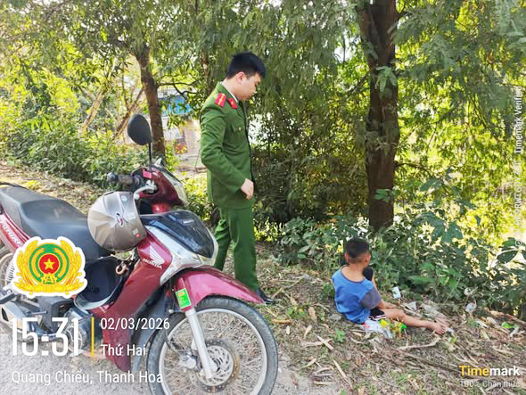 Khoảng 15 giờ ngày 02/3/2026, Công an xã Quang Chiểu tiếp nhận tin báo của quần chúng nhân dân về việc phát hiện một cháu nhỏ có biểu hiện đi lạc tại khu vực bản Xim, xã Quang Chiểu.