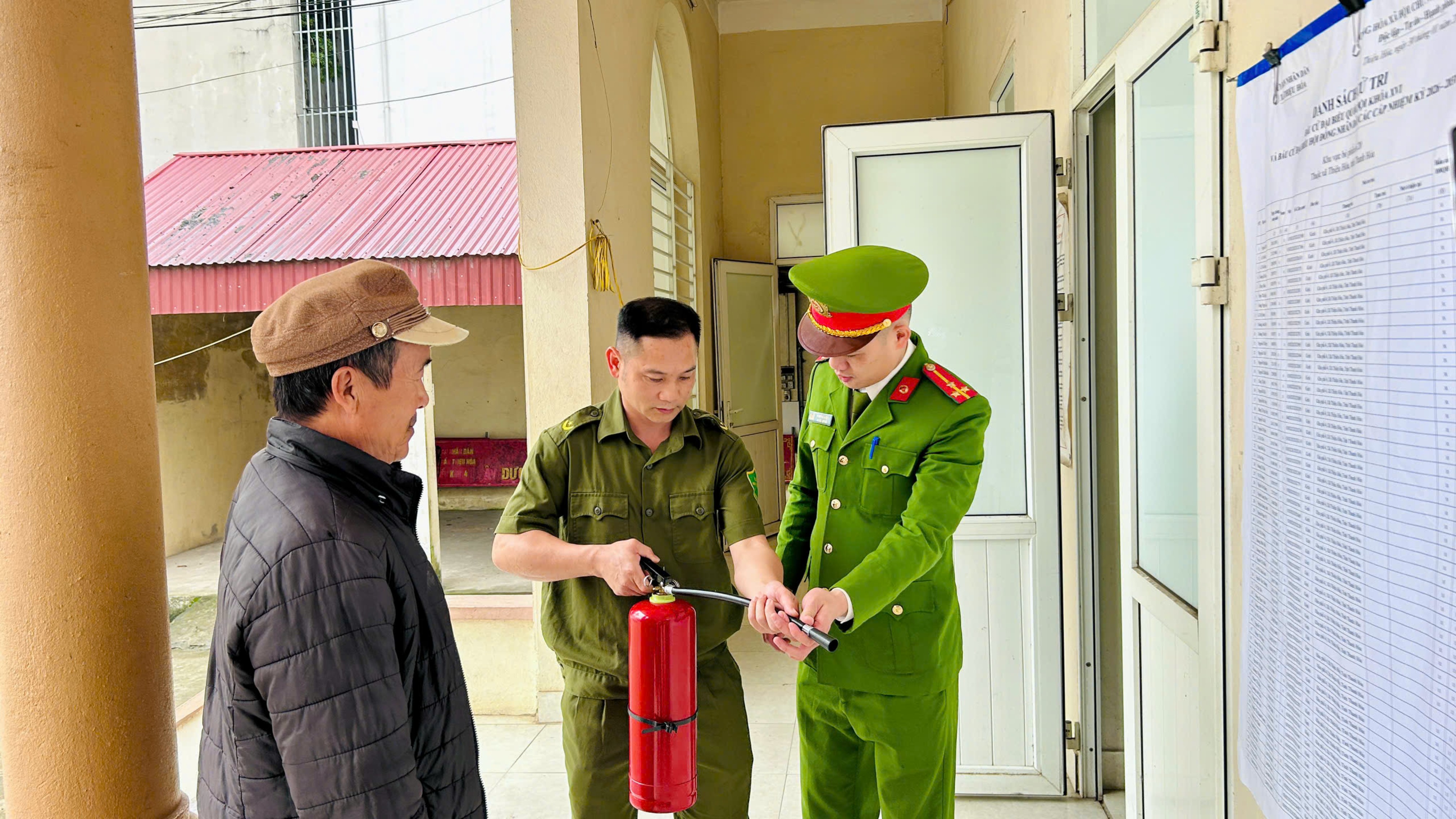 Song song với công tác bảo đảm ANTT, Công an xã Thiệu Hóa đã chủ động tổ chức kiểm tra, rà soát toàn diện điều kiện an toàn phòng cháy, chữa cháy (PCCC) tại các điểm bỏ phiếu; chú trọng hệ thống điện, khu vực để tài liệu, khu vực tập trung đông người. Quá trình kiểm tra, những tồn tại, thiếu sót được nhắc nhở, hướng dẫn khắc phục kịp thời. Lực lượng Công an xã phối hợp ban quản lý cơ sở, lực lượng bảo vệ và các tổ chức đoàn thể tổ chức tuyên truyền trực tiếp, hướng dẫn kỹ năng xử lý tình huống cháy, nổ ban đầu; kiểm tra việc trang bị bình chữa cháy, phương tiện PCCC tại chỗ và hướng dẫn sử dụng thành thạo khi có sự cố xảy ra.