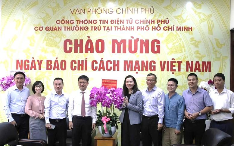 Các đồng chí Lãnh đạo TPHCM thăm và chúc mừng Báo Điện tử Chính phủ tại TPHCM nhân ngày Báo chí Cách mạng Việt Nam - Ảnh: VGP