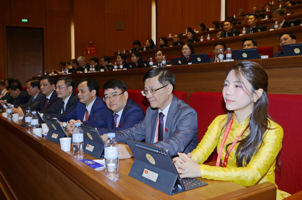 Đại biểu Đảng bộ tỉnh Thanh Hóa dự phiên thảo luận tại hội trường.