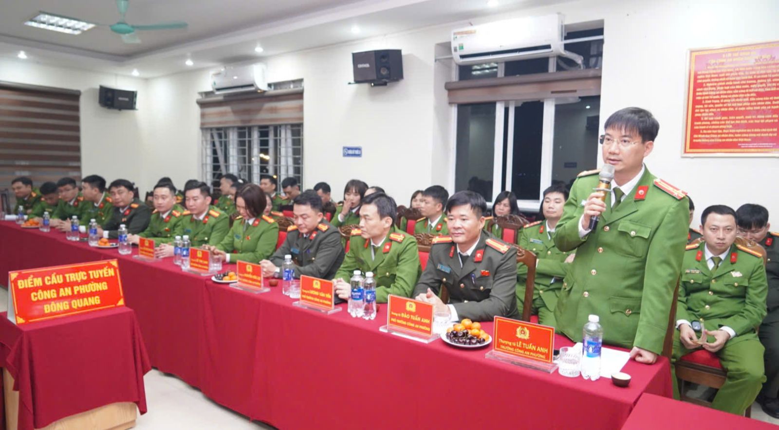 Chỉ huy Công an phường Đông Quang báo cáo phương án bảo vệ an toàn cho Nhân dân vui Xuân, đón Tết.