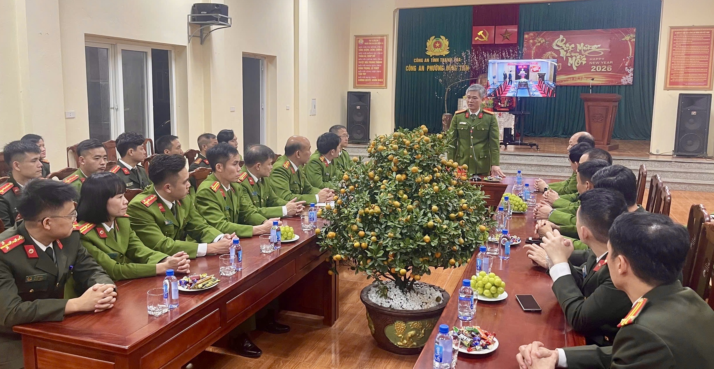 Tối 16/02/2026, trong không khí rộn ràng, ấm áp trước thời khắc giao thừa Tết Nguyên đán Bính Ngọ 2026, đồng chí Đại tá Nguyễn Anh Tuấn, Phó Giám đốc Công an tỉnh đã trực tiếp đến kiểm tra, động viên cán bộ, chiến sĩ Công an phường Đông Tiến và các lực lượng tham gia làm nhiệm vụ bảo đảm an ninh, trật tự (ANTT) Tết Nguyên đán Bính Ngọ 2026.