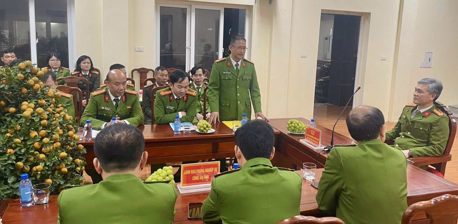Đại tá Nguyễn Anh Tuấn, Phó Giám đốc Công an tỉnh kiểm tra công tác bảo đảm an ninh, trật tự đêm Giao thừa tại Công an phường Đông Tiến