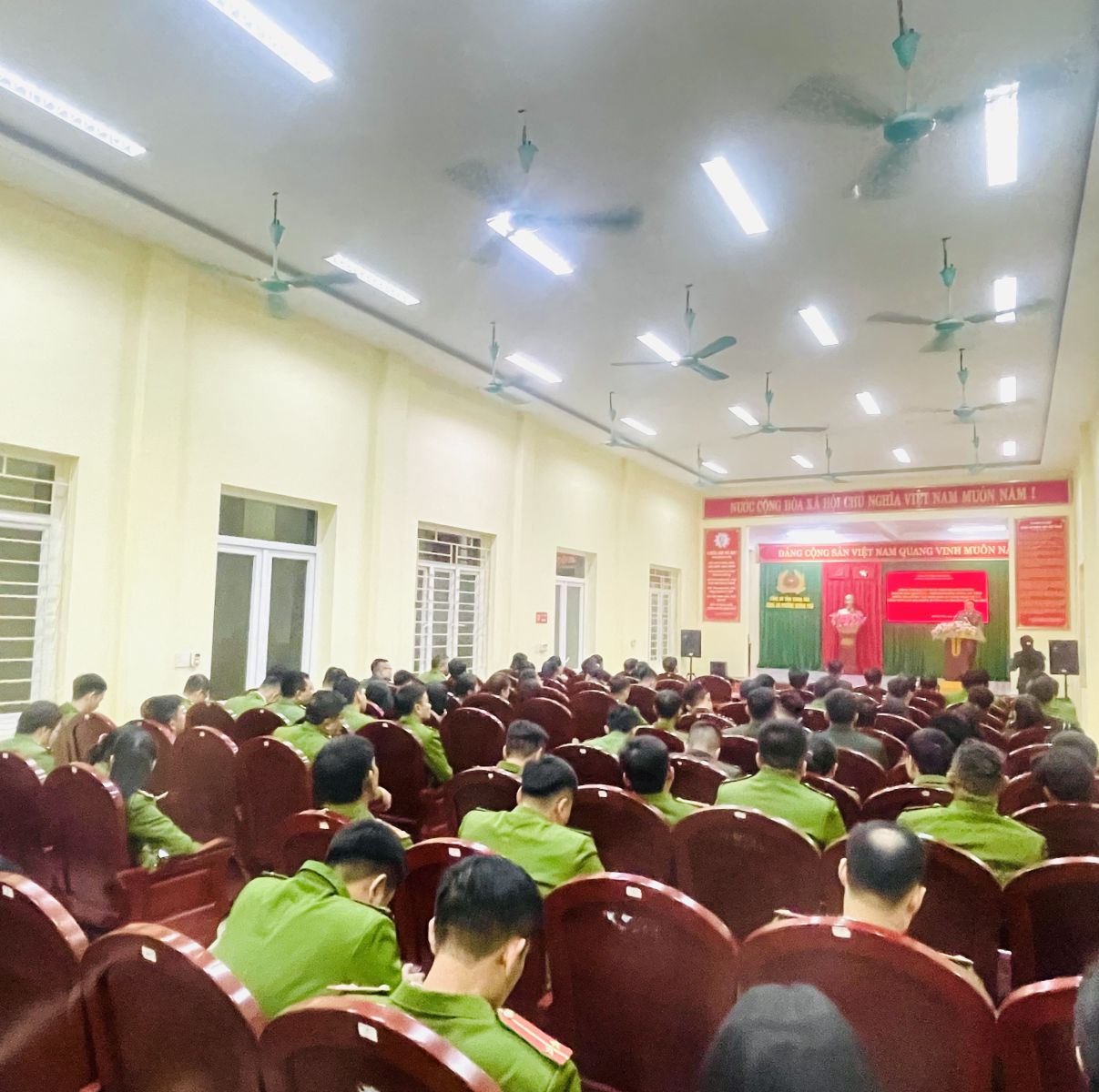 Đại tá Trần Thái Quang Hoàng, Phó Bí thư Đảng uỷ, Phó Giám đốc Công an tỉnh phát biểu giao nhiệm vụ và chúc Tết CBCS Công an phường Quảng Phú trước khi ra quân bảo đảm ANTT đêm Giao thừa